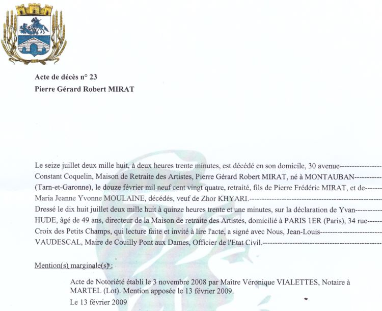 2008 Acte de décès (Couilly-Pont-aux-Dames, France)