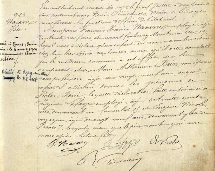 1877 Acte de naissance (Limoges, France)