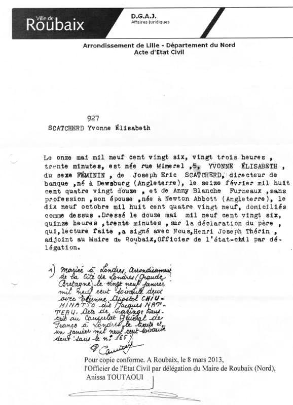 1926 Acte de naissance (Roubaix, France)