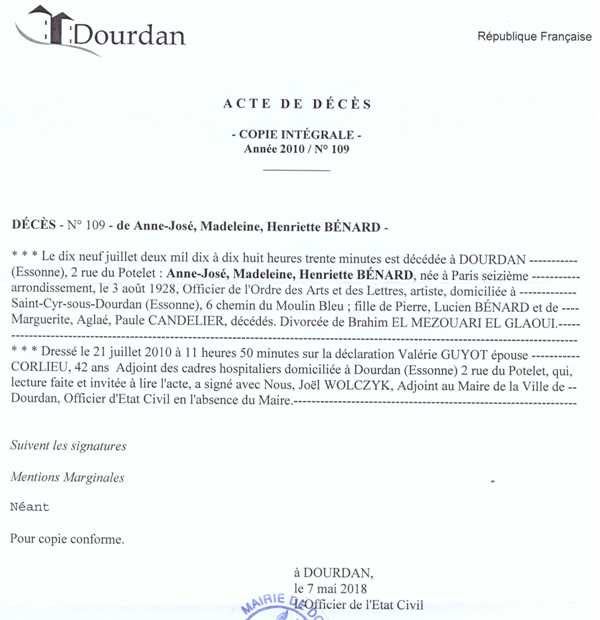 2010 Acte de décès (Dourdan, France)