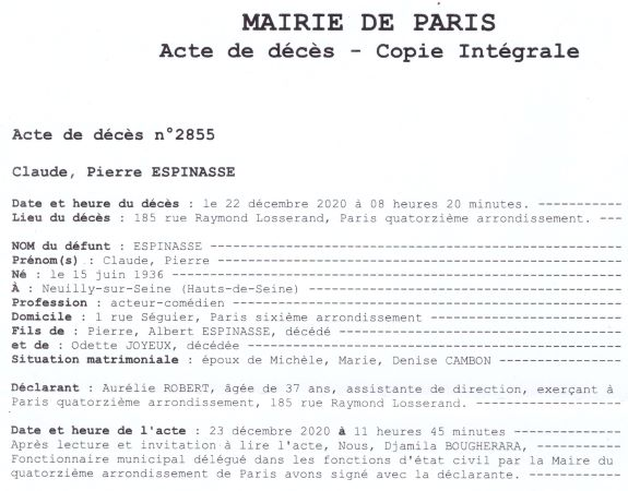 2020 Acte de décès (Paris 14ème, France)