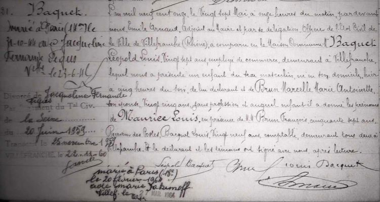 1911 Acte de naissance (Villefranche-sur-Saône, France)