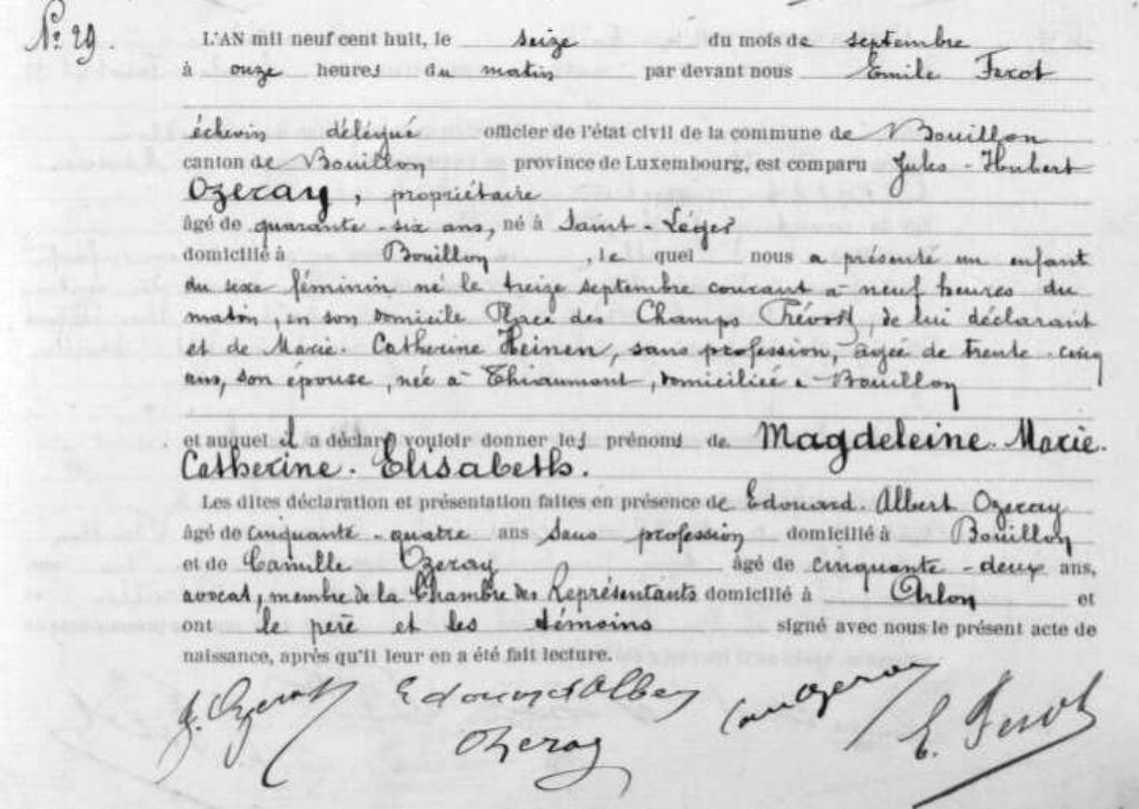 1908 Acte de naissance (Bouillon, Belgique)