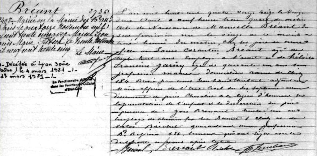 1981 Acte de décès (Lyon 3ème, France)
