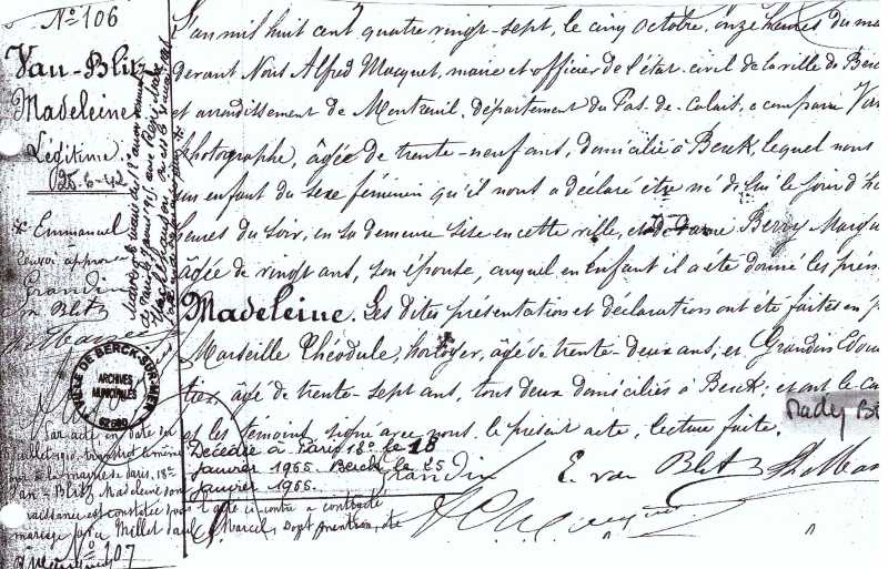 1887 Acte de naissance (Berck-sur-Mer, France)
