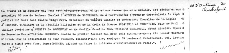 1952 Acte de décès (Paris 8ème, France)