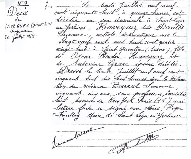 1958 Acte de décès (Saint-Léger-en-Yvelines, France)