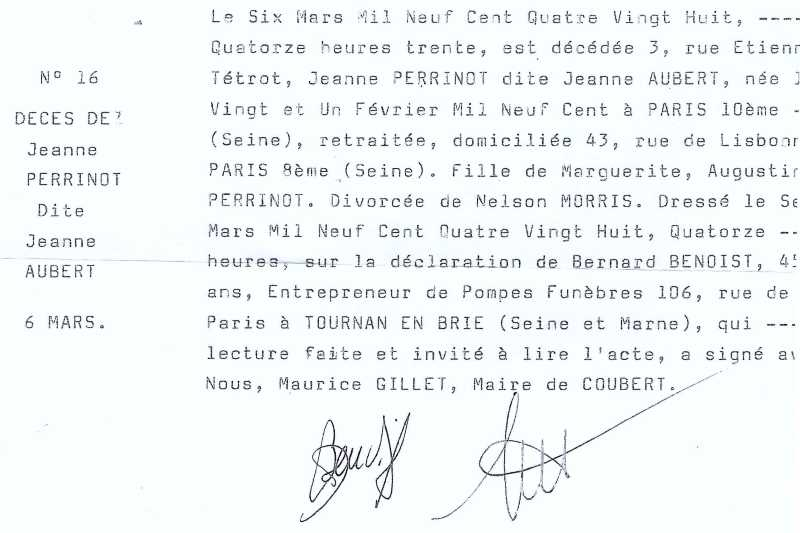 1988 Acte de décès (Coubert, France)