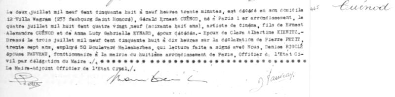 1958 Acte de décès (Paris 8ème, France)