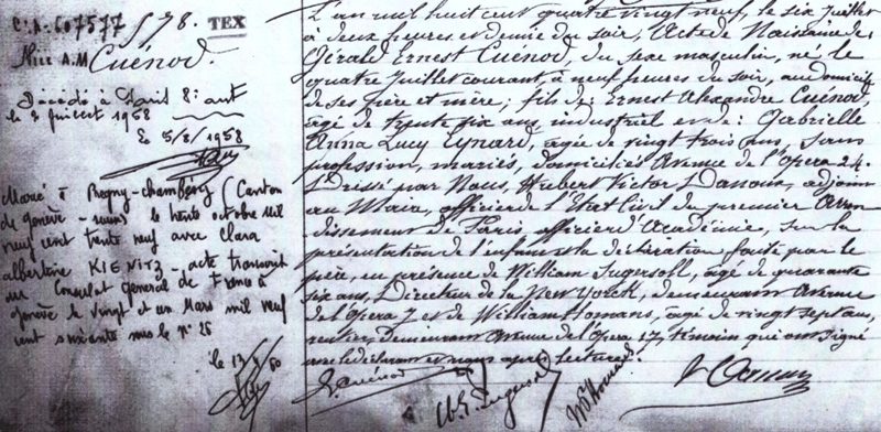 1889 Acte de naissance (Paris 1er, France)