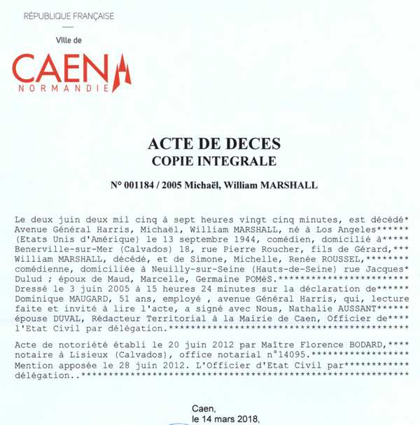 2005 Acte de décès (Caen, France)