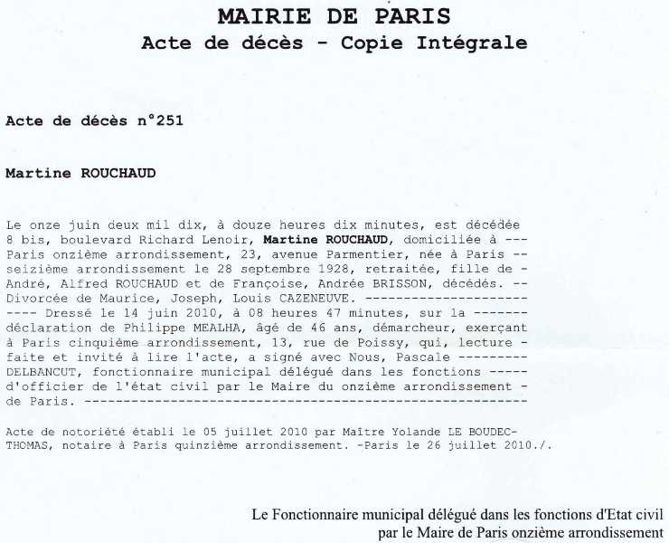 2010 Acte de décès (Paris 11ème, France)