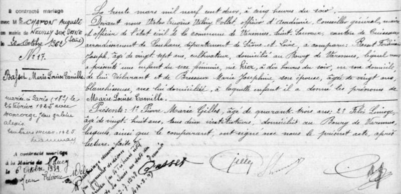 1902 Acte de naissance (Varennes Saint-Sauveur, France)