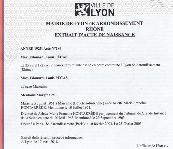 1925 Acte de naissance (Lyon 6ème, France)