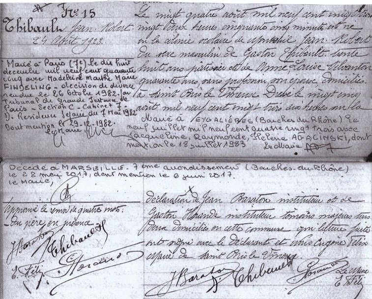 1923 Acte de naissance (Saint-Bris-Le-Vineux, France)