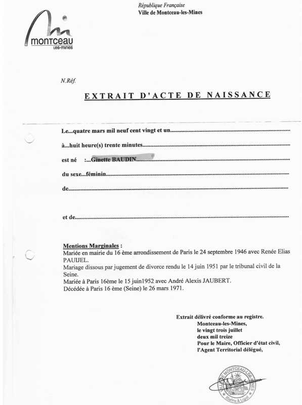 1921 Acte de naissance (Montceau-les-Mines, France)
