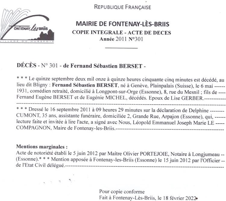 2011 Acte de décès (Fontenay-lès-Briis, France)