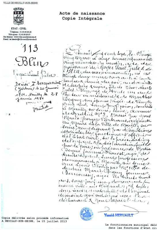1907 Acte de naissance (Neuilly-sur-Seine, France)