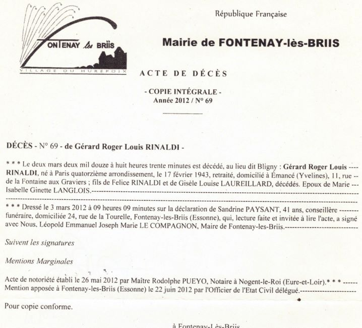 2012 Acte de décès (Fontenay-les-Briis, France)
