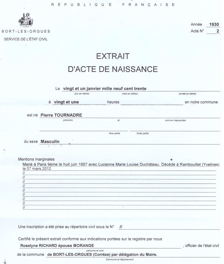 1930 Acte de naissance (Bort-les-Orgues, France)