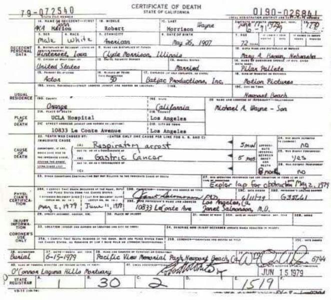 1979 Acte de décès (Los Angeles, Californie, USA)