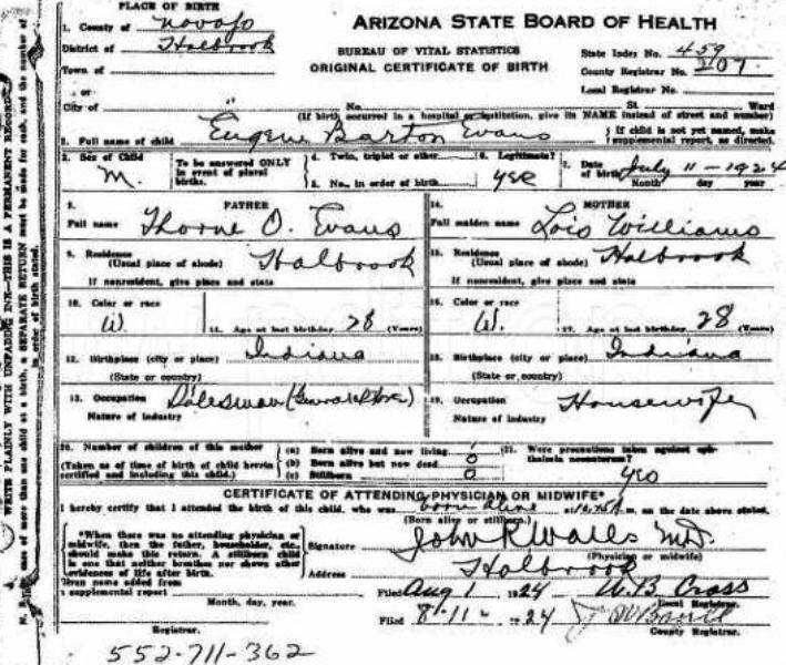 1924 Acte de naissance (Holbrook, Arizona, USA)