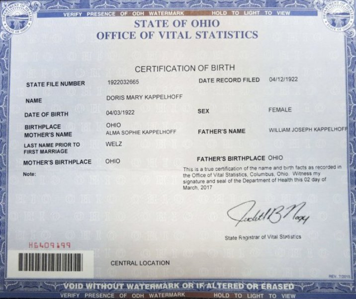 1922 Acte de naissance (Cincinnati, Ohio, USA)