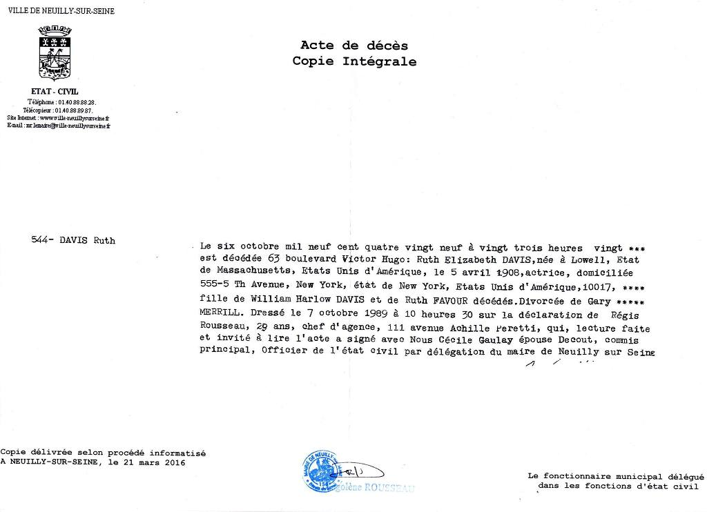 1989 Acte de décès (Neuilly-sur-Seine, France)