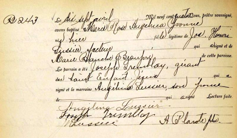 1904 Acte de baptême (Montréal, Québec, Canada)