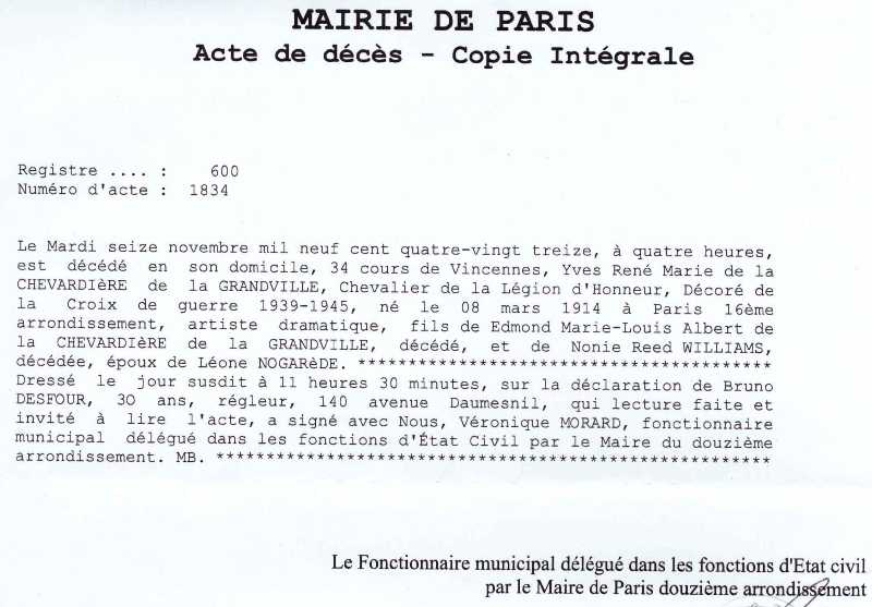 1993 Acte de décès (Paris 12 ème, France)