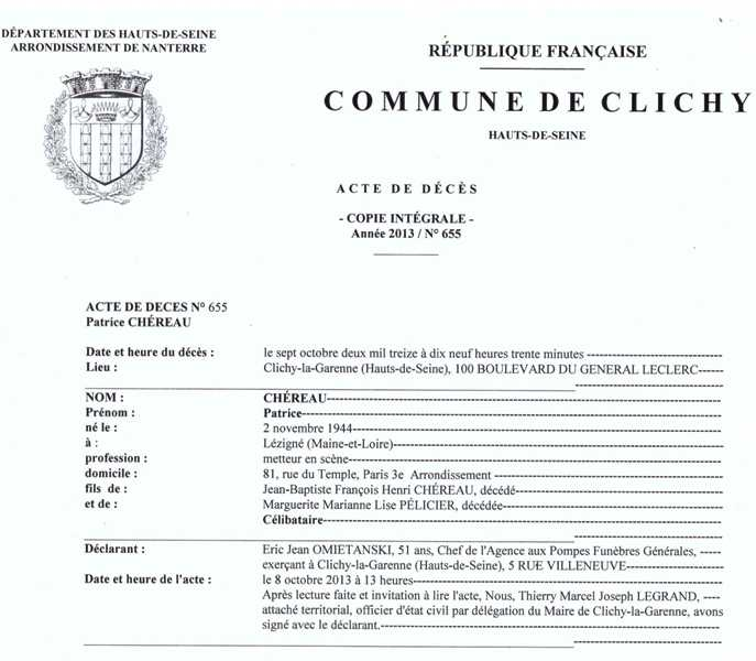2013 Acte de décès (Clichy-la-Garenne, France)