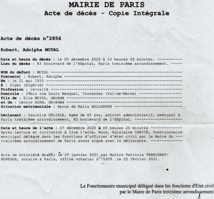 2020 Acte de décès (Paris 13ème, France)