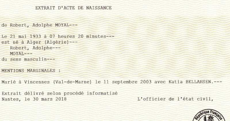 1933 Acte de naissance (Bab El Oued, Algérie Française)