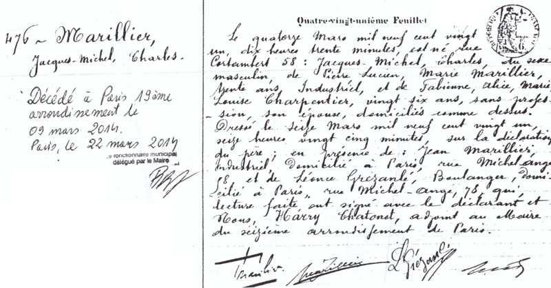 1921 Acte de naissance (Paris 16ème, France)