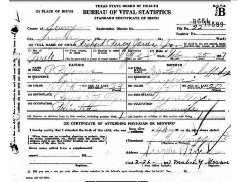 1927 Acte de naissance (Snyder, Texas, USA)