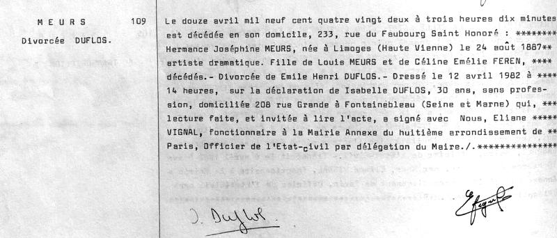 1982 Acte de décès (Paris 8ème, France)