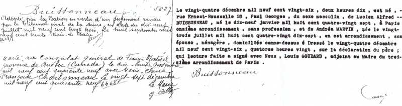1926 Acte de naissance (Paris 13ème, France)