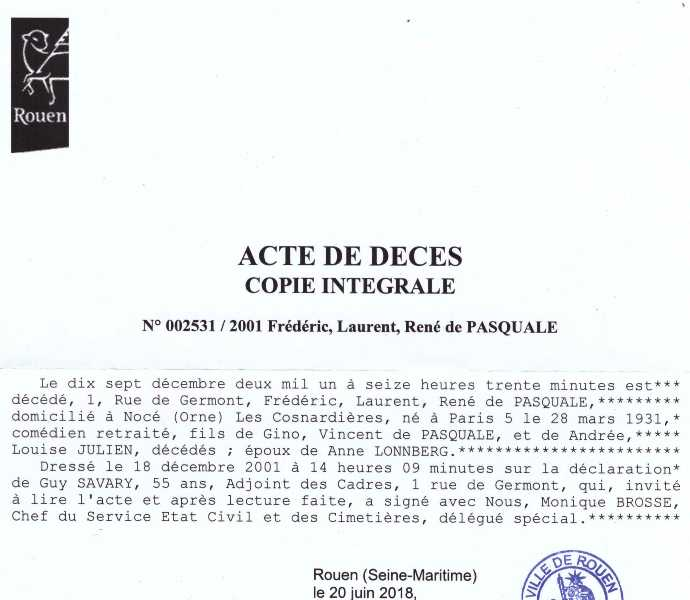 2001 Acte de décès (Rouen, France)