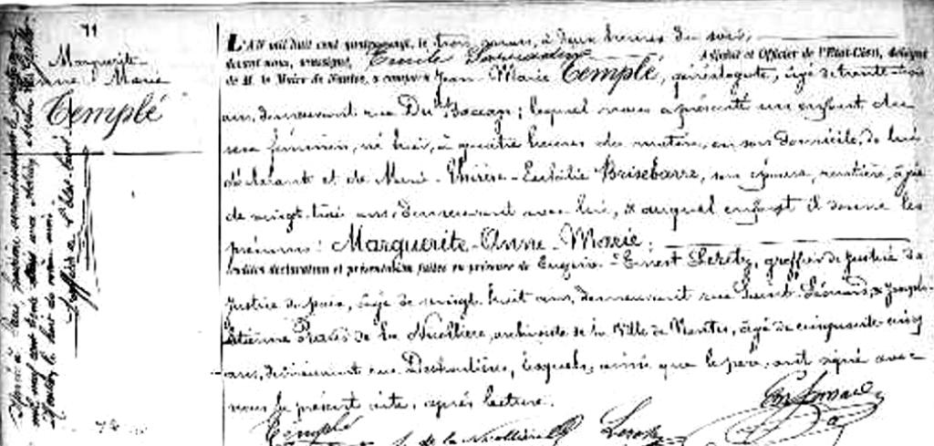 1880 Acte de naissance (Nantes, France)