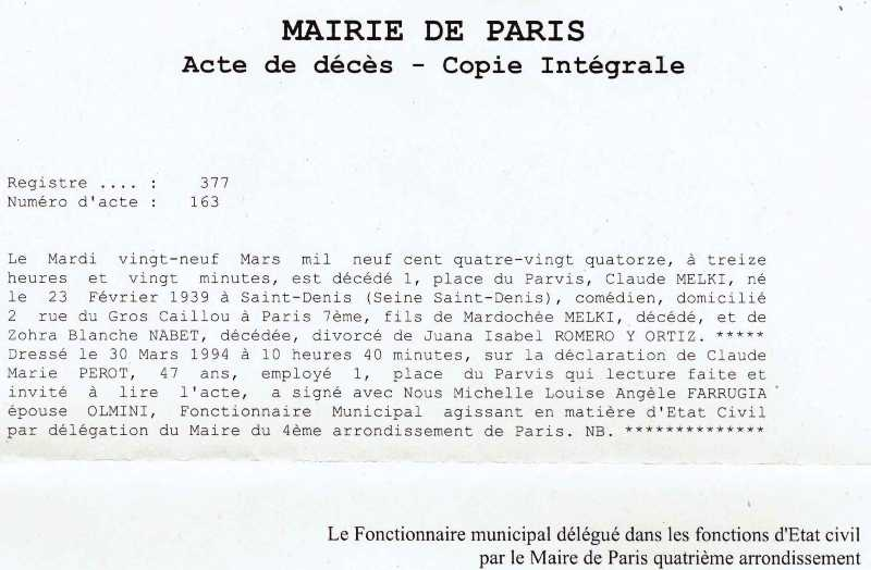 1994 Acte de décès (Paris 4ème, France)