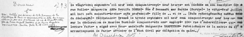 1957 Acte de décès (Paris 17ème, France)