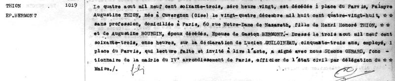 1963 Acte de décès (Paris 4ème, France)