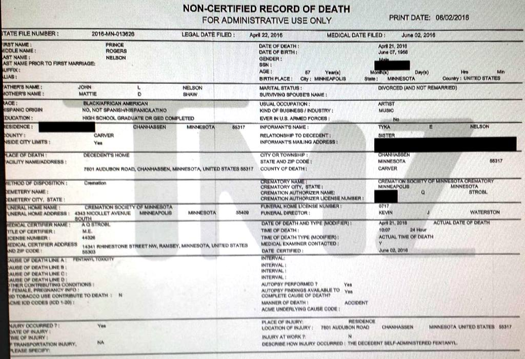 2016 Acte de décès (Chanhassen, Minnesota, USA)