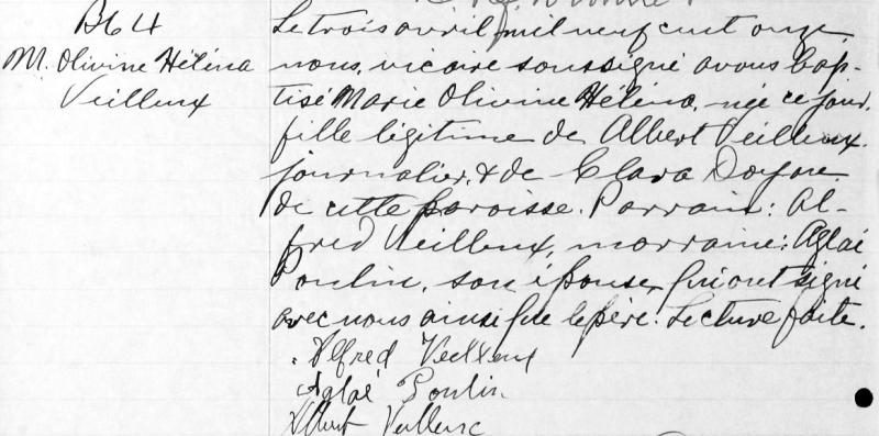 1911 Acte de baptême (Saint-Georges, Québec, Canada)