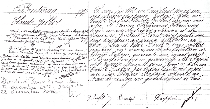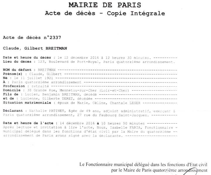 2016 Acte de décès (Paris 14ème, France)