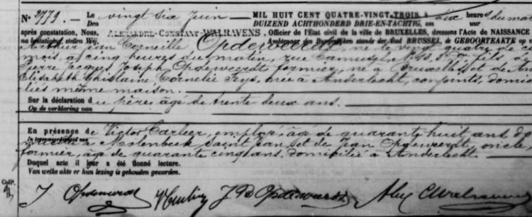 1883 Acte de naissance (Bruxelles, Belgique)