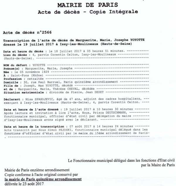 2017 Acte de décès (Issy-les-Moulineaux, France)