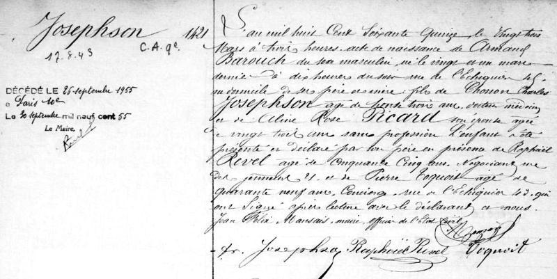 1875 Acte de naissance (Paris 10ème, France)