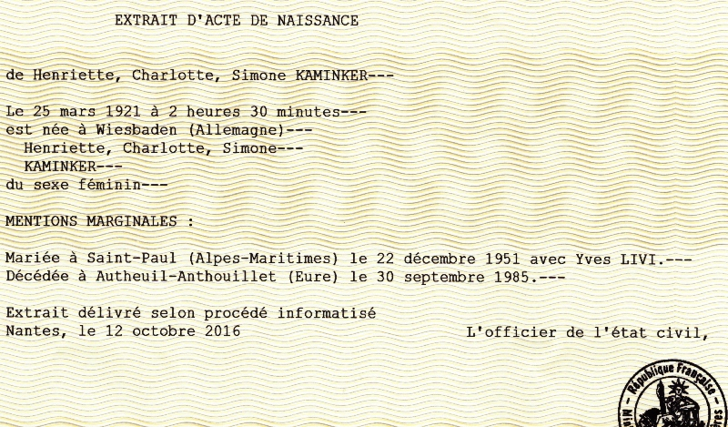 1921 Acte de naissance (Wiesbaden, Allemagne)
