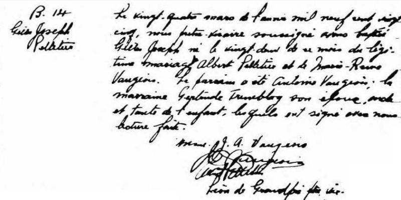 1925 Acte de baptême (Saint-Jovite, Québec, Canada)
